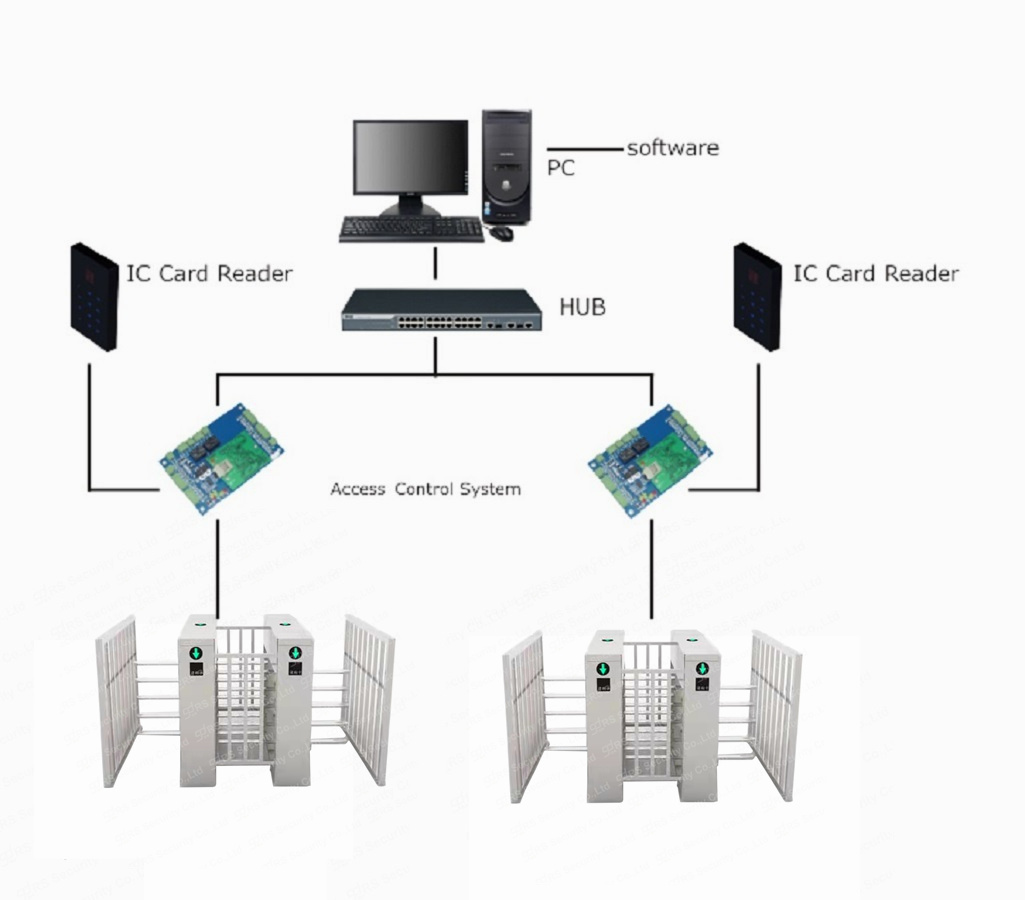 Prohibiting illegal passing, the turnstile without the card, the locking time can be setted, and unlocked by the card.